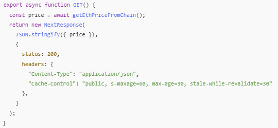 - Your backend logic (API routes, endpoints) fetches blockchain data and sets cache headers for downstream layers.
